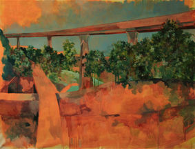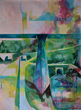 Pour fixer le souvenir, de ce paysage avant sa transformation définitive, j’ai réalisé des photos en série et en panoramique. Mon travail de recherche a fait émerger l’idée d’amoncellement. J’ai travailler les peintures présentées par couches successives et superposées en jouant sur la fluidité, l’opacité, la transparence, la pigmentation de la peinture.